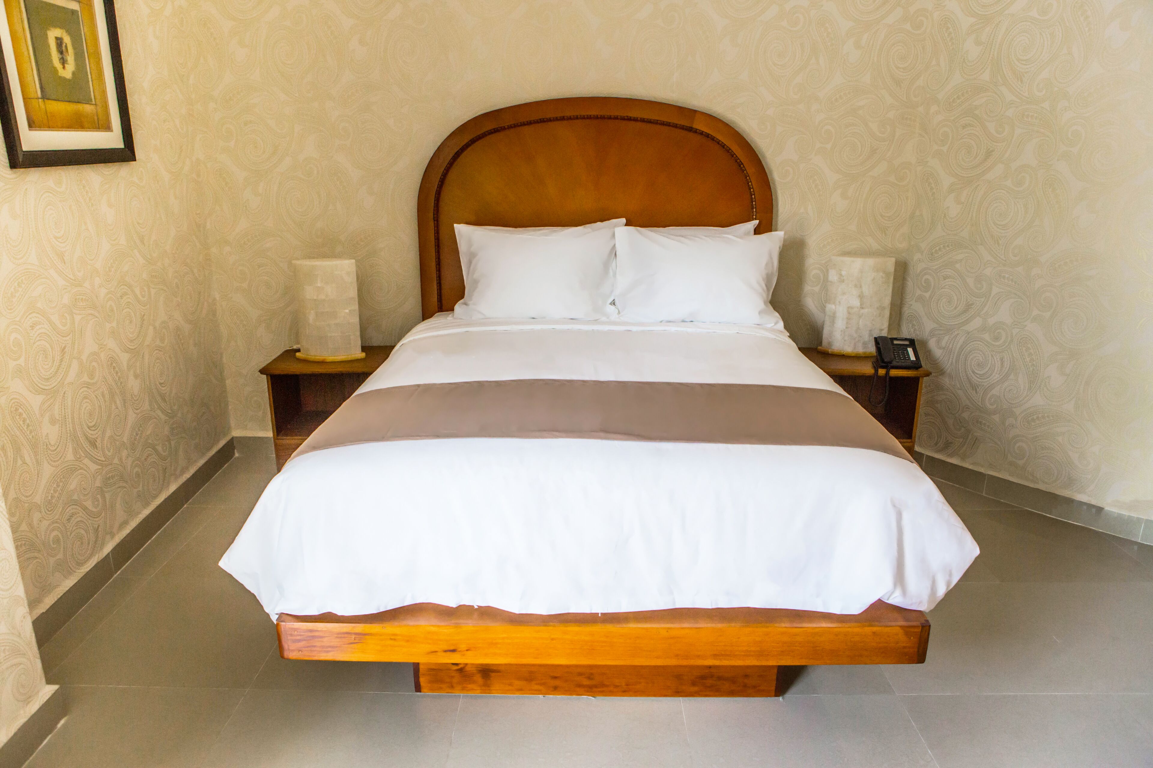 Suite Standard is 323 square feet and includes 2 double beds 131-150 width plus balcony, desk, satellite tv , and ironing set.